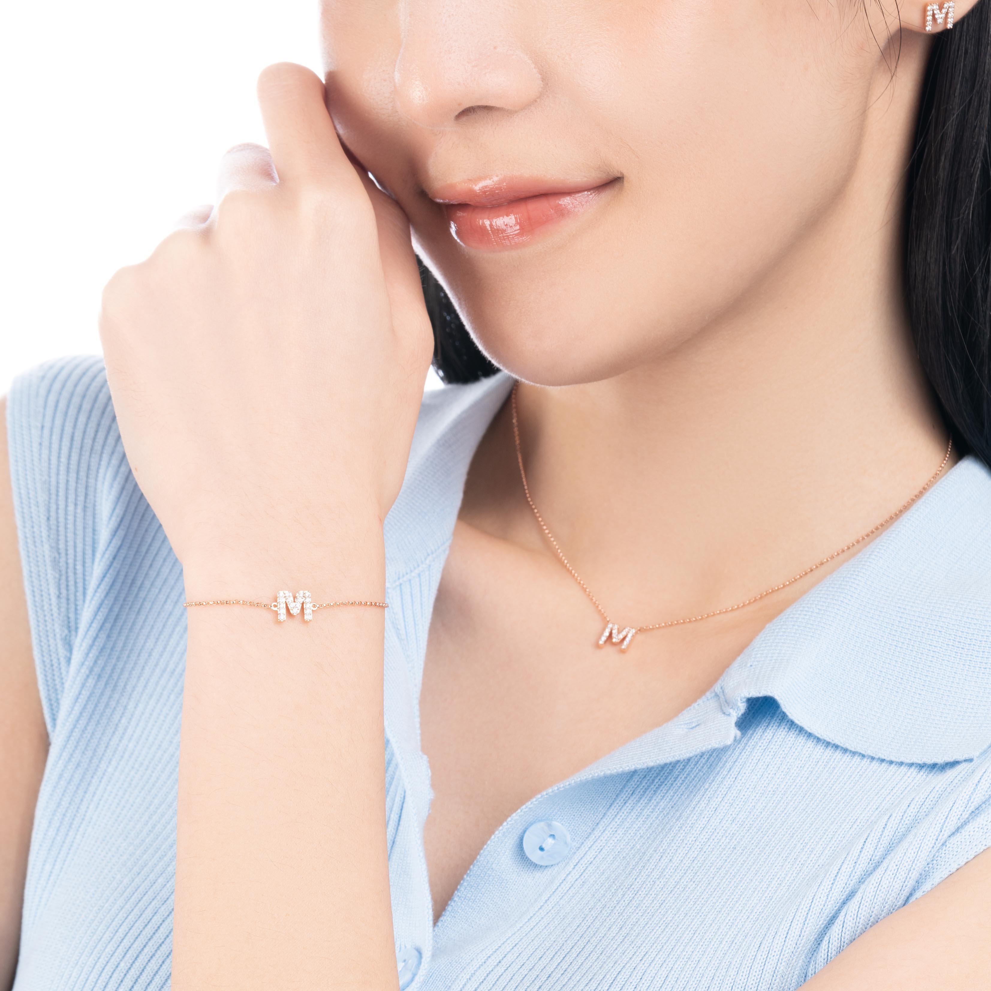 14K 紅色黃金天然鑽石手鏈